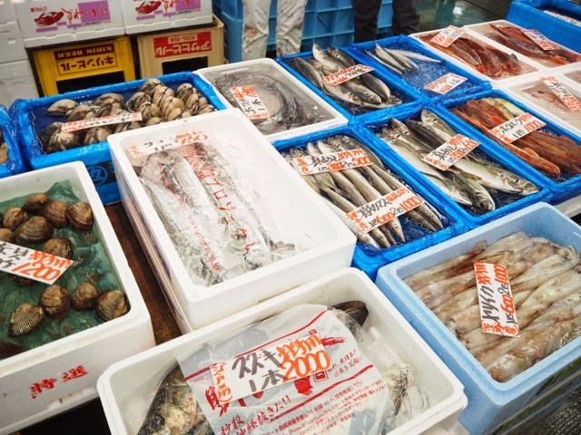 新鮮なお魚がたくさん並んでて、とってもFishyな香りがただよっていましたよ。(アタリマエ